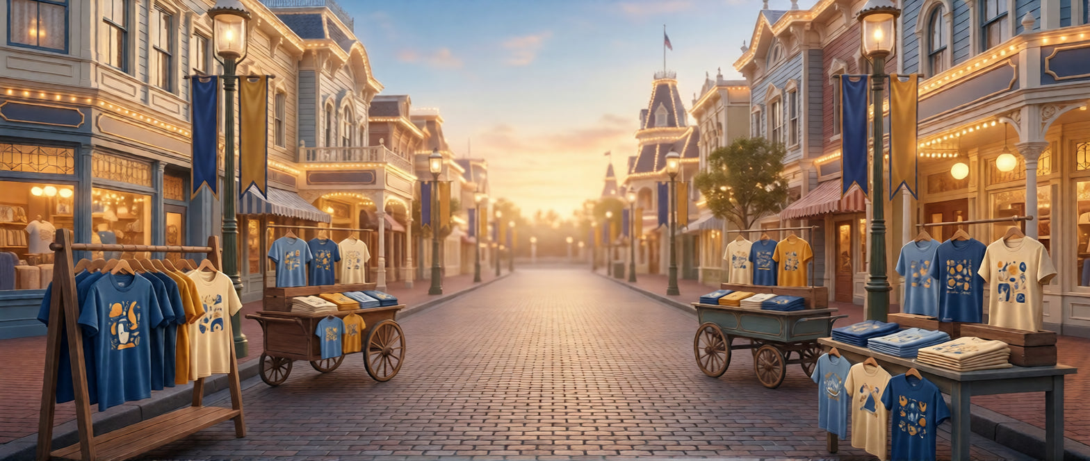 Our shirts are printed on soft, high-quality cotton or cotton-blend fabrics chosen for comfort and durability. They’re lightweight, breathable, and built for all-day park wear — from rope drop to fireworks.
